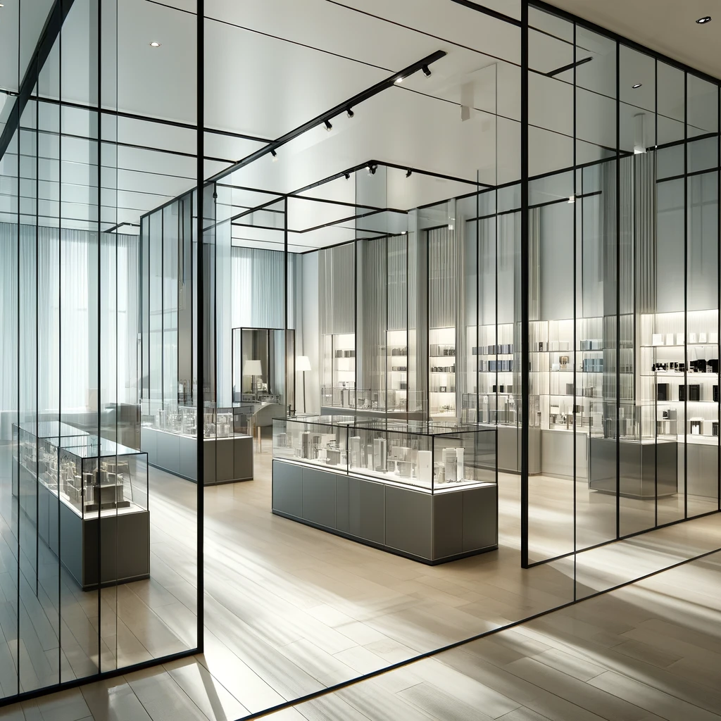 While glass partitions provide transparency, they can also offer privacy when needed. Frosted or tinted glass can be used to create private consultation areas or fitting rooms without completely isolating these spaces. This balance between openness and privacy enhances the customer experience by providing comfort and convenience.