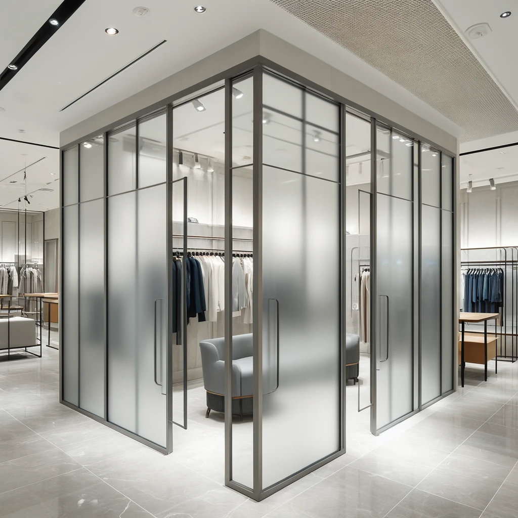 Retailers can customize glass partitions to reflect their brand’s identity and style. Frosted or etched glass with the company’s logo, patterns, or colors can reinforce brand recognition and create a cohesive look throughout the store. This customization helps in creating a unique shopping environment that resonates with the brand’s values and aesthetics.